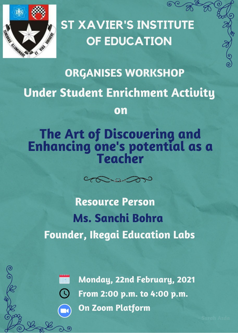 Workshop Series on ‘Progressive Strategies for Teaching and Learning :Workshop Series on „Progressive Strategies for Teaching and Learning?was organized from 7th June, 2016 to 21stJune, 2016 for students. The faculty conducted workshops on themes like Inquiry Approach, Expository Approach, Constructivist Approach, Classroom Alive, Positive Discipline, Maximizing the Chalkboard, Bridge Lesson, Using Teaching Learning Resources and Ignatian Pedagogical Paradigm.